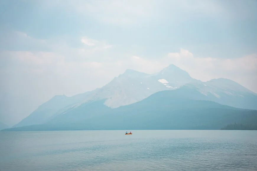 Heading out on a Maligne Lake canoe trip in Jasper is an unforgettable experience!
